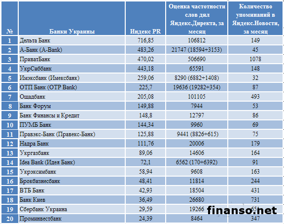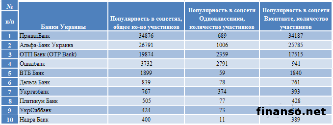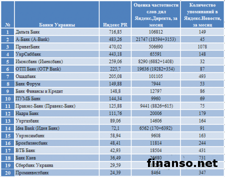 Finanso.net определил наиболее популярные банки УкраиныКатегория: Финансы