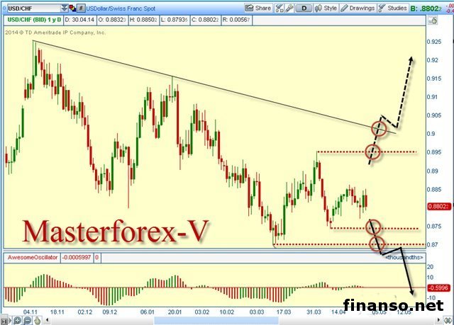 Изменения в курсе тенге.Курс тенге по состоянию на 30 апреля укрепился к: - сингапурскому доллару до 144.97 тенге, на 0.03 тенге (или + 0.02%); - английскому фунту стерлингов до 305.97 тенге, на 0.59 тенге (или + 0.19%); - австралийскому доллару до 168.51 тенге, на 0.79 тенге (или + 0.46%); - швейцарскому франку до 206.97 тенге, на 0.41 тенге (или + 0.19%); - евро до 252.45 тенге, на 0.05 тенге (или + 0.01%); - литовскому литу до 73.14 тенге, на 0.02 тенге (или + 0.02%); - китайскому юаню до 29.10 тенге, на 0.01 тенге (или + 0.03%); - японской иене до 1.77 тенге, на 0.01 тенге (или + 0.56%). В тоже время курс тенге снизился к: - российскому рублю до 5.10 тенге, на 0.05 тенге (или - 0.99%); - канадскому доллару до 165.67 тенге, на 0.48 тенге (или - 0.29%); доллару США до 182.05 тенге, на 0.03 тенге (или - 0.01%). Кроме того, без изменений курс тенге остался только к: - белорусскому рублю - 1.83 тенге; - украинской гривне - 15.97 тенге. Чем объясняется укрепление к швейцарскому франку?Аналитики компании RVD Markets рассказали о том, что многие мировые валюты торговались на понижение к доллару США, в то время как курс тенге укрепился по отношению к доллару. В то же время представители компании TusarFX предоставили график пары доллар США/швейцарский франк, на котором видно долгосрочный нисходящий тренд на укрепление курса швейцарского франка. В настоящее время валютная пара торгуется на уровне 0,8802 швейцарских франка к доллару США, ближайшим уровнем поддержки выступают уровень локального минимума 0,8742 и исторический минимум 0,8698. В тоже время сопротивлением выступает локальный максимум 0,8952 и наклонный канал МФ. Технический анализ курса тенге.В настоящее время после февральского понижения курс тенге остается в рамках узкого флета 186,020 - 181,325. По этой причине пробой верхнего уровня флета будет означать начало долгосрочного тренда на падение курса тенге к доллару США, а пробитие его нижней границы будет говорить о движении на укрепление, но такой вариант по мнению экспертов сейчас маловероятен. |