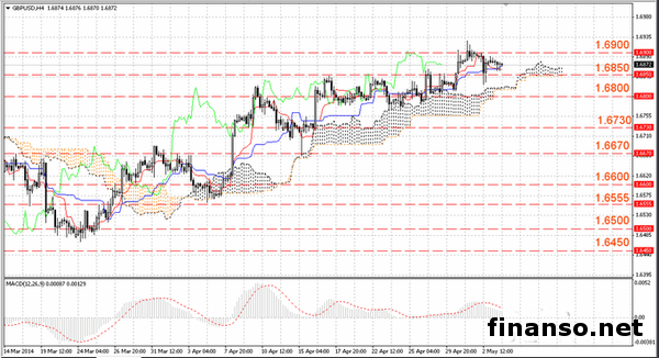Минувшая неделя была для валютной пары весьма напряженной. Сильные данные из Великобритании посодействовали паре GBP/USD в обновлении максимальных значений 2009 года в области 1.6920. Однако пара не сумела там закрепиться и сейчас ведет торги ниже отметки 1.6900. Данные NFPR в минувшую пятницу из Америки нарастили волатильность финансового рынка, но к завершению торгов все возвратилось на изначальные позиции. Вчерашняя торговля прошла в узком коридоре, возможно, что и сегодня, 6 мая, картина будет такой же.