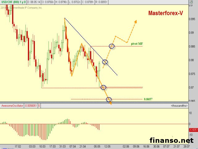 Брокеры «Пантеон-Финанс» показали график для пары валют доллар США/франк, где хорошо заметно, франк, ведя торги в зоне коррекции к долгосрочному тренду на укрепление, не сумел совершить пробой важного уровня поддержки 0.8702 и откатился, теперь ведет торги на показателе 0,8833.