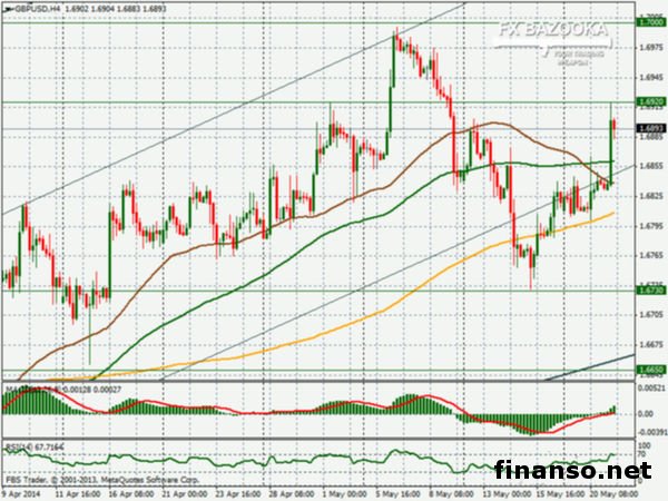 Сегодня национальная валюта Великобритании укрепилась по отношению к американскому доллару на фоне позитивных розничных продаж страны за прошлый месяц. Достаточно сильные статистические данные увеличивают прогнозы скорого увеличения процентных ставок Банка Англии. Также и протоколы последнего заседания подчеркивают, что некоторые представители банка готовы к этому. Так, в среду, 21 мая, кабель добрался до максимума с 9 мая - 1.6920 американских доллара. На сегодняшний день этот показатель является и локальным сопротивлением. Краткосрочные показатели демонстрируют, что пара слегка перекуплена, поэтому в ближайшие дни прогнозируется незначительная консолидация в этом районе. Об этом сообщили представители брокерской компании FBS в беседе с журналистами интернет-издания «Украина сегодня: Finanso.net». Пробитие выше показателя 1.6920 откроет путь к психологическому сопротивлению на уровне 1.7000. Вероятнее всего, что именно от этой фигуры рынок совершит разворот вниз. Поддержка для рассматриваемой пары находится на значениях 1.6850/40, 1.6800 и 1.6730. Валютная пара GBP/USD после боковой консолидации завершила торги с нейтральными итоговыми данными. Британия практически не выпустила новостей, внимания достойны лишь сообщения от Rightmove, которые указали на то, что цены на жилищном рынке увеличиваются – рост за май составил 3.6% мес/мес, 8.9% г/г , а раньше располагался на отметках 2.6% мес/мес, 7.3% г/г. |