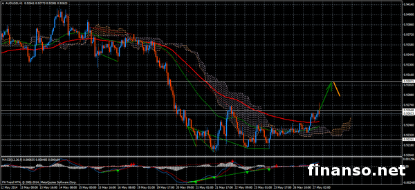 Пара AUD/USD весь понедельник вела торги около коррекционной зоны. Невзирая на это, стоимость вырвалась в зону «бычьего» рынка.Торговая область составила приблизительно 46 пунктов, при этом уровень цены Low снизился к минимальной отметке 0.9229, а уровень цены High поднялся к максимальному показателю 0.9277. На протяжении дня эксперты брокера ForexTrend ждали увеличения к ближайшей отметке сопротивления. За поведением пары на рынке валют следили корреспонденты издания «Украина сегодня: Finanso.net». На графике по паре можно увидеть, что стоимость доллара Австралии снова нашла крепкую поддержку около отметки 0.92125. С минувшей пятницы по этой паре валют преобладают настроения «быков». Пара валют AUD/USD готова продолжать рост. Стоимость ведет торги над показателем облака Ишимоку и скользящих средних EMA (50 и 100), что говорит о преобладании рынка «быков». Осцилляторы MACD средние, как и OsMA импульсы, являются положительными и продолжают увеличение, указывая на дальнейшую покупку. Целью для пары является рост до отметки 0.9307. Важными уровнями для покупки выступают показатели 0.9266; 0.9307; для продажи - 0.9226. Цена валюты зажата между скользящими средними с периодами 55, 144 и 89 (ряд показателей сопротивления 0.9290, 0.9300 и 0.93175) с одной стороны и средней с периодом 34 (отметка поддержки 0.9245) - с другой. |
