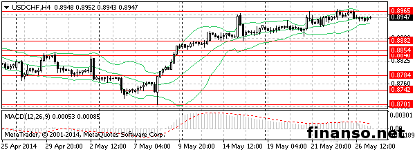 На предоставленном ниже 4-часовом графике видно, что курс валюты нашел значительное сопротивление неподалеку от отметки 0.8965 (диапазон трехмесячных максимумов), с минувшей пятницы сохраняется сильное давние на пару валют USD/CHF.