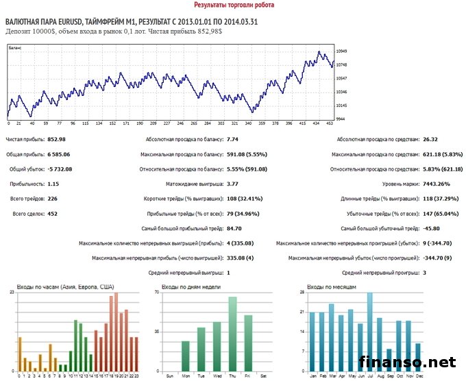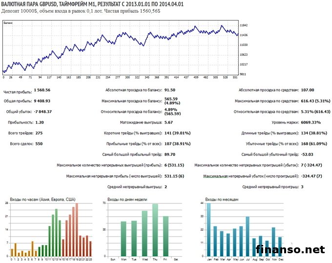 Лучшие Форекс-брокеры, заинтересованные в прибыльных сделках клиентов и дорожащие своей репутацией, предлагают пользователям по-настоящему надежных и эффективных «помощников» трейдеров, автоматизирующих, с максимальной выгодой для их владельцев, торговлю на Форекс, о чем информируют корреспонденты издания «Украина сегодня: Finanso.net».Компания PROFIT Group, являющаяся одним из лидеров рынка, представила недавно свой новый Форекс-робот Madrid, важной особенностью которого стало самое важное – качество работы по минимальной просадке, что по мнению консервативных трейдеров, является главным показателем любого робота на Форекс. Предпочитающие торговать с использованием роботов, трейдеры считают более важным, чем получение максимальной прибыли, как сообщает издание «Биржевой лидер», допускаемый «умными машинами» уровень минимальной просадки, так как это является показателем приносимой роботом прибыли. Максимум профитов при минимуме присадок приносит робот Madrid.Уникальный по функциональности робот Форекс Madrid представлен компанией именно для такой категории трейдеров, показав за время тестирования прекрасные результаты по минимальной торговле. Рабочие параметры робота Madrid следующие: - Версия советника 2,2; - Платформа Мetatrader 5; - Валютные пары: EUR/USD, USD/JPY, GBR/USD; - Таймфрейм М1, Н1; - Время работы – круглосуточное. Торговля этим роботом является максимально консервативной, так как Madrid не использует при убытках разные методы усреднения. Результаты торговли робота Madrid: Торгуя по валютной паре GBR/USD с тайфреймом m1 , результат с 01.01.2013 по 01.04.2014, на депозите 10 тыс. долларов и объеме входа в рынок 0,1 лота чистая прибыль составила 1560,56 американского доллара. Результаты по валютной паре USD/JPY за этот же период при таймфрейме h1 и депозите 10 тыс. долларов и объеме входа в рынок 0,1 лота принесли чистой прибыли 2901,20 американского доллара. При стартовом депозите 10 тыс. долларов, объеме каждой сделки 0, 1 лота за период с 01.01.2013 по 01.04.2014 прибыль была следующей: - EUR/USD плюс 8,53 процента и максимальной просадке по средствам 5,82 процента; - GBR/USD плюс 15,6 процента и максимальной просадке 5,31 процента; - USD/JPY плюс 29 процентов при максимальной просадке 19,5 процента; - NZD/USD плюс 6,58 процента при максимальной просадке 6,42 процента; - AUD/USD плюс 32,7 процента при максимальной просадке по средствам 19,13 процента. В итоге: плюс 92,41 процента. Будучи разработанным под рыночные условия текущего года робот Madrid стал прибыльным и надежным средством автоматизированной торговли, проходящей безопасно и минимальными рисками. |