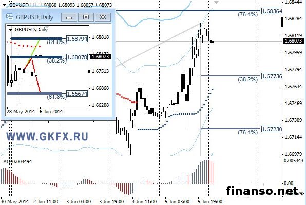 Валютная пара GBP/USD практически не высказала реакции на принятое Банком Англии решение не изменять политику. Но позже стремительное падение американского доллара на валютном рынке Forex дало возможность паре весьма значительно увеличиться. В пятницу, 6 июня, участники рынка ждали выхода статистики по созданию новых трудовых мест в частном производственном секторе США, поэтому колебания на американской торговой сессии никого бы сильно не удивили. "На эту неделю по традиции предполагается два возможных варианта движения стоимости - основной красный и альтернативный зеленый", - рассказали представители брокерской Форекс-компании GKFX корреспондентам популярного интернет-издания «Украина сегодня: Finanso.net».Важными показателями в пятницу были обозначены на часовом графике, расположенном ниже. Индикатор АО располагается на положительной территории и демонстрирует снижение, свидетельствуя о коррекции перед вероятным продолжением увеличения. Индикатор тренда говорит о подъеме стоимости пары валют фунт/доллар США на Форексе. |
