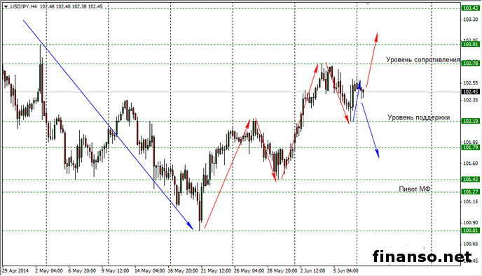Прогноз экспертов Форекс по паре доллар/иена. Представители брокерской компании «Пантеон-Финанс» говорят, что на 4-часовом графике, расположенном ниже, пара доллар/иена консолидируется около уровня 102,50. Отметка поддержки располагается недалеко от 102,10. Сопротивление – в области 102,78. Пробой показателя сопротивления поставит перед долларом цель на увеличение в область 103,01 и выше - к 103,43. Прорыв отметки поддержки направит пару на падение в область 101,79.