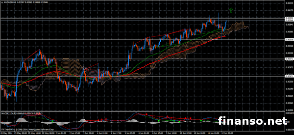 Пара AUD/USD не сумела продолжать восхождение и остановилась в зоне коррекции. Торговая область составила около 62-х пунктов. Показатель цены Low снизился к минимальной отметке 0.9349 на территории коррекции. Показатель цены High переместился к пику на отметке 0.9412, обновив месячное максимальное значение. На протяжении дня ожидается продолжение увеличения стоимости. Затяжная коррекция практически исключена, отметили специалисты брокерской компании ForexTrend в разговоре с журналистами авторитетного онлайн-издания «Украина сегодня: Finanso.net».Пара валют AUD/USD продолжит восхождение. Стоимость, как и раньше, располагается над показателем облака Ишимоку и скользящих средних EMA (50 и 100), говоря тем самым о преимущественном положении рынка «быков». MACD средние, как и OsMA импульсы носят положительный характер и продолжают увеличиваться, указывая на предстоящую покупку в ближайшем будущем. Значимыми показателями для покупки выступают отметки 0.9266; 0.9307; для продажи - 0.9226. Целью является увеличение на 50-60 пунктов по возрастающей. В четверг, 12 июня, пара AUD/USD по-прежнему растет и в результате пробила уровень 0.9400 в процессе европейских сессионных торгов. В настоящее время пара старается удержать позиции над этим показателем. Пара AUD/USD пробила максимумы мая и достигла 2-месячной вершины на отметке 0.9413, поскольку инвесторы опять заинтересованы высокодоходными валютами. Оззи ведет торги на уровне 0.9407 с ростом на 2,9%, в то время как игроки Форекс находятся в ожидании данных из Америки. |