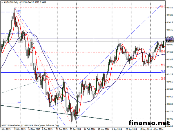 В понедельник, 23 июня, при поддержке индекса деловой активности в секторе производства Китая (PMI) пара валют AUD/USD на протяжении первых часов азиатских торгов добралась до отметки 0.9444. Индекс PMI, по словам специалистов брокерской Форекс-компании, составил за июнь 50.8 пункта по отношению к майскому значению 49.4 и прогнозу 49.7. Этот показатель первый раз за текущий год расположился над значением в 50.0 пункта, что свидетельствует об увеличении в секторе промышленности Китая - страны, являющейся важным торговым партнером Австралии.