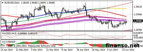 Евро расположился выше отметки 1.3600 доллара. Уменьшение индекса экономических настроений с 102.6 до 102.0 взволновало участников рынка, так как прогнозировалось увеличение значения до 103.0. Такой итог практически полностью нивелировал майский подъем индекса на 0.6. Однако индекс по-прежнему находится гораздо выше долгосрочных средних значений (100) и, как и раньше, говорит о квартальном росте ВВП на 0.3%/0.4%. Снижение в июне этого значения вызвано падением в экспортоориентированном секторе промышленности. Настроения в сфере услуг и розничной торговли немного улучшились. Однако падение индекса доверия потребителей ставит под сомнения дальнейшее увеличение показателей.