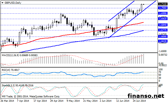 В рамках все еще длящегося возрастания вдоль нижней линии коридора национальная валюта Британии построила значительную «бычью» свечу, которой сумела пробить показатель 1.7060, и консолидировалась над обозначенным значением. Синяя линия на предоставленном ниже графике обозначает 100-периодную простую скользящую среднюю, построенную на основе стоимости завершения торговой сессии. Красная линия обозначает 50-периодную скользящую среднюю, построенную на основе стоимости завершения торгов. Аналитики Форекс-компании «Mill Trade» рассказали корреспондентам интернет-издания «Украина сегодня: Finanso.net» о положении фунта стерлингов на валютном рынке.