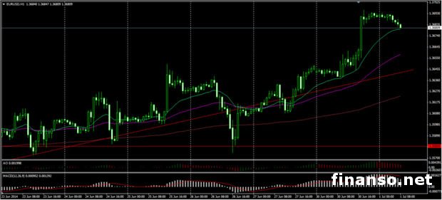 В понедельник, 30 июня, пара валют EUR/USD стремительно возросла и зафиксировала максимальное значение на отметке 1.3696, хотя особого повода для таких событий не было. Первоначальный индекс по уровню инфляции в Европейской зоне остался на прежнем уровне, который располагался у значения 0.5%, хотя эксперты Форекс ожидали увеличения на 0.6%. Статистические данные по Соединенным Штатам Америки, наоборот, оказались весьма позитивными. Показатель незавершенных продаж домов увеличился на 6.1% по отношению к прогнозируемым экспертами увеличениям на 1.4% и на 0.5% в прошлом месяце.
