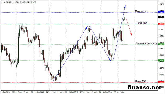 Неспособность стоимости укрепить свои позиции над пивотом МФ может стать свидетельством слабости среднесрочной тенденции увеличения австралийской национальной валюты или силы стоимости доллара Америки на финансовом рынке Форекс. Уменьшение стоимости доллара Австралии в область показателя поддержки 0,9412 и дальнейшее нисходящее движение в область 0,9387 отменят перспективы увеличения валютной пары к новым многомесячным максимальным значениям.