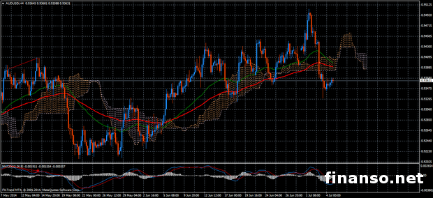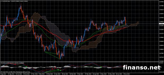 Курс валютной пары AUD/USD показывает движение в обоих направлениях, но по итогам недели с некоторыми потерями. Так, валютная пара завершила неделю на отметке 0,9352. Данные по занятости в соединенных штатах, которые публиковались на прошлой неделе оказали намного выше чем ожидалось – на уровне 288 тысяч, а уровень безработицы снизился до 6,1%. Количество одобренных заявок на строительство жилья в Австралии выглядело отлично, а розничные продажи показали снижение. На текущей неделе в Австралии ожидается публикация индекса делового доверия, а также показателей уровня безработицы и занятости, о чем пишет "Украина сегодня: Finanso.net".Публикация индекса делового доверия состоится во вторник. Отметим, что он рос, и в мае поднялся на 7 пунктов. 7 июля будет опубликован показатель изменения занятости, являющийся одним из важнейших показателей, и может значительно повлиять на валютную пару AUD/USD. В прошлом месяце данный показатель показал первый спад с января на -4800, что было достаточно далеко от значений, которые прогнозировали аналитики, ожидая рост на уровне 10300. В настоящее время рынки ожидают разворота тенденции с оценкой в 12300. Также ожидается, что уровень безработицы повысится на 5,9% от предыдущего значения 5,8%. Движение валютной пары.На этом фоне валютная пара AUD/USD продолжила расти, а ее нисходящий откат покрыл весь уровень рост. Торговый диапазон составил примерно 176 пунктов, при чем отметка Low спустилась к минимуму на уровне – 0,9328, в то время как High поднялся к максимуму на уровне 0,9504. На текущей неделе ожидается коррекция, а трейдерам рекомендуется входить в рынок только по дневным прогнозам, как сообщают аналитики журнала для инвесторов «Биржевой лидер». Пара AUD/USD сейчас возвращается в зону коррекции, и торгуется около облака Ишимоку, а также скользящих средних EMA (50 и 100), что свидетельствует о коррекции на рынке Форекс. MACD положителен и теряя свою силу указывает на откат вниз, что подтверждают импульсы OsMA. На 4-часовом графике видно, что цена торгуется ниже облака Ишимоку и средних EMA (50 и 100), что говорит о медвежьем преимуществе на рынке. Индикаторы MACD и OsMA, находятся ниже нуля и продолжают снижаться, тем самым указывая на перспективу продажи. Цели: Коррекция, с нисходящей тенденцией, о чем сообщает аналитический департамент компании Forex Trend. |