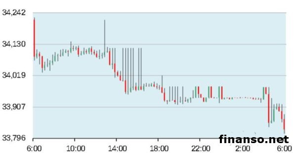 Вчерашняя торговая сессия Нью-Йорка зафиксировала снижение американского доллара против рубля на 0,47%, окончив при этом торги на уровне 33,940. В ходе торгов на американском рынке пара достигла максимальных значений на уровне 34,121 и минимальных – на 33,916. На азиатском валютном рынке в 6:00 утра по GMT цена составила 33,827, где американский «зеленый» снизился на 0,33%, против рубля. Первая и вторая линии поддержки валютной пары ожидаются на отметках 33,685 и 33,542, в том время как первый и второй уровень сопротивления расположатся на отметках 34,097 и 34,367, как передает «Биржевой лидер».