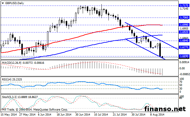 Британский фунт сформировал большую «медвежью» свечу после того, как он отскочил от верхней границы канала, который расположился у уровня сопротивления 1,6840, а его цена, пробив уровни 1,6775, 1,6690 сосредоточилась у нижней границы канала. Такую информацию передают корреспонденты издания «Украина сегодня: Finanso.net».Построенная на основе цены закрытия (close), синей линией на представленном графике обозначена стопериодная простая скользящая средняя, а построенная на основе цены закрытия (close), уже красной линией отражена пятидесятипериодная скользящая средняя. Основными индикаторами MACD, сообщает издание «Биржевой лидер», являются: медленная экспоненциальная скользящая средняя, которая составляет 26 на основе цен закрытия, а также на основе закрытия цен быстрая экспоненциальная скользящая средняя (составляет 12). Расположение столбиков индикатора MACD ниже нулевой линии соответствует отрицательной динамике индикатора, а расположение столбиков индикатора MACD выше нулевой линии указывает на положительную динамику индикатора. Показатель 14 составляет параметр построенного на основе цен закрытия индикатора RSI. Зона перепроданности индикатора RSI определяется пересечением линии индикатора ниже уровня 30, а зона его перекупленности определяется пересечением линии индикатора выше уровня семьдесят. В окне индикатора RSI расположен уровень 50 для более удобного определения направления тренда. Показатели индикатора схоластика (Stochastic Oscillator) составляют: период %D равен 3, период %К – 5, при периоде замедления – 3. Указанный индикатор построен на основе средней цены (Low/High) методом простой скользящей средней. Зона перекупленности этого индикатора определяется пересечением линии индикатора выше уровня 80, а зона его перепроданности устанавливается пересечением индикатора ниже уровня 20. Преобладающим на рынке Форекс является восходящее направление.На преобладающее восходящее направление на рынке Форекс указывает пересечение вверх скользящих средних с периодами пятьдесят и сто. Умеренное восходящее движение продолжает демонстрировать скользящая с периодом сто, в то время как незначительно разворачивается в боковом направлении скользящая с периодом 50. Нижняя граница канала может служить ближайшей поддержкой рынку. Эксперты компании «Mill Trade» при этом обращают наше внимание на преобладание на Форекс-рынке «медведей», что демонстрирует нисходящий ценовой канал. Текущее ослабление пары GBP/USD, что важно подчеркнуть, происходит по целому ряду причин. В Британии это было связано, к примеру, вниманием участников рынка к публикациям об ухудшении данных по безработице. |