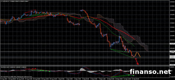 Не оставшись в коррекции, продолжила падение пара AUD/USD, а ее торговый диапазон не превысил ста шестидесяти пяти пунктов. Об этом сообщают корреспонденты издания «Украина сегодня: Finanso.net».В то время как уровень Low можно было видеть у минимума 0,9032, отметка High ушла к максимуму 0,9217. Эксперты Forex Trend отмечают, что планировалось в течение вчерашнего дня дальнейшее решение проблем с отметки 0,9048, так же как и откат с последующей коррекцией у зоны облака. Так как в настоящее время инвесторов интересует в большей степени монетарная политика США, чем австралийские экономданные, в минусе пятый день подряд готовиться закрыться AUD/USD, после своего падения к новым шестимесячным минимумам. Вдесятеро превысил прогноз по занятости в Австралии опубликованный в четверг отчет, однако на этих данных оззи возрасти не смог, быстро возобновив падение. В скором времени затухала любая попытка вырасти. В районе 0,9055 торгуется сейчас AUD/USD (-0,48 процента от цены открытия), обновив свой максимум 0.9042, а за неделю пара потеряла почти 3,5 процента. Многие участники Форекс-рынка убеждены, что упреждающее заявление по поводу затяжного характера низких ставок изменится, о чем на следующей неделе ФРС будет принято решение по монетарной политике. Технический анализ.Поддерживающие уровни 0,9052,09004 и 0,8920 размещены ниже центральной точки разворота, расположившейся на 0,9136, при этом выше находятся точки сопротивления 0,9184, 0,9268 и 0.9316, став ключевыми уровнями по AUD/USD. Об этом сообщает издание «Биржевой лидер». Находится на 0,9280 и развернута вниз дневная скользящая часовая средняя 20ЕМА, причем часовая скользящая средняя 200SMA развернута вниз и расположилась на 0,9269. На 29 находится развернутый вниз часовой RSI. На 0.9032 (минимуме 21 марта) и 0,9000 (психологическом уровне) проходит уровень поддержки по AUD/USD, в то же время сопротивление возможно на 0.9107 (внутридневной максимум), 0,9182 (двухсотдневная SMA) и максимуме 11 сентября после опубликованных данных – 0.9216. Такими являются значения техуровней. К продолжению спуска готовится AUD/USD. Ниже скользящих средних ЕМА (50 и 100), а также уровня облака Ишимоку торгуется в настоящее время цена, показывая преимущества на рынке «медведей». Отрицательны MACD средние, продолжив падение, предполагая вероятную продажу. О слабой активности рынка, находясь у нулевой отметки, говорят импульсы OsMA. Серьезными уровнями являются: 0,9096 – Sell; и 0,9147,0,9191,0,9237 – Buy. С целью 0,9 является продажа с пробоем отметки 0,9048, а по информации аналитиков Forex Trend, в случае отката цены в коррекционную зону, вероятной станет альтернатива. Граф.1 (AUD/USD 1 час): |