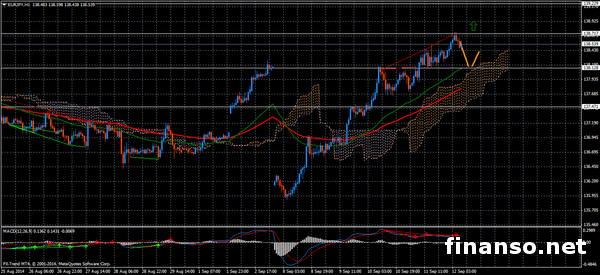 Обновив свой максимум, пара EUR/JPY без проблем продолжила свой рост, при этом около ста пунктов за позавчерашний день составил ее торговый диапазон. Об этом пишут корреспонденты издания «Украина сегодня: Finanso.net».Опустившись к минимуму 137,72, в начале дня сформировалась отметка Low, а у максимума 138,73 можно было наблюдать отметку High. Дальнейший рост, с пробитием недельного максимума, так же как откат цены в зоне коррекции, ожидался вчера, и по оценкам экспертов Forex Trend, в рынок лучше не входить, несмотря на восходящий тренд. Основными лузерами оказались 12 сентября 2014 г. в Азии иена и оззи, тогда как продолжил укрепляться доллар, сохраняя на Форекс-рынке доминирующую позицию. Под уровень 0,9080 (50 процентов коррекции ралли января/июня) прорвалась AUD/USD, направившись на поддержку 0,9050, где находится много выставленных стопов. Вследствие продаж австралийского доллара ощутила давление NZD/USD, торгуясь вблизи минимумов у 0,8165. Выше сопротивления 107,30, коснувшись максимума на 107,37, пробилась USD/JPY, при этом повышающее давление сохраняется. С 53 до 56,6 в августе возрос в Новой Зеландии индекс деловой активности PMI, за этот же период рост индекса цен на продукты был 0,3 процента, против значения -0,7 процента за предыдущий период. На отметке 1,1 процента против -0,7 процента в июле оказался новозеландский индекс цен на жилье REINZ. Превысил августовские прогнозы, достигнув 702,5 миллиарда против семисот миллиардов объем новых выданных кредитов в Китае. Технический анализ.Продолжает торговаться в канале своего роста пара USD/JPY. Очередное расширение консолидации отработал вчера Форекс-рынок. Понижение к точке 106,90 станет очередным, после чего к уровню 107,77 последует растяжение. Рынок в любое время может уйти в коррекцию к уровню 104,40, по мнению аналитиков, уже отработав локальную цель своего роста. Свой нисходящий откат готовит EUR/JPY. О преимуществах «бычьего» рынка свидетельствуют облака Ишимоку и скользящие средние ЕМА (50 и 100), выше которых торгуется цена. Показывают о дальнейших продажах в перспективе положительные MACD средние, терявшие свою силу и вчера. Сигнализируя о небольшой активности рынка, импульсы OsMA расположились у нулевой отметки. 138,12; 137,47 по Sell и 138,71; 139,22 – Buy, являются весомыми уровнями, при этом целью стала коррекция в виде отката. Если ценой будет пробит максимум, возможной станет альтернатива. По оценкам аналитиков Forex Trend, с целью тридцать пять-сорок пять пунктов станет покупка с отметки 138,77. Граф.1 (EUR/JPY 1 час): |