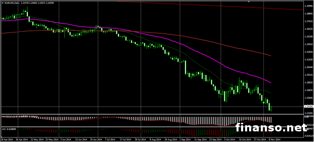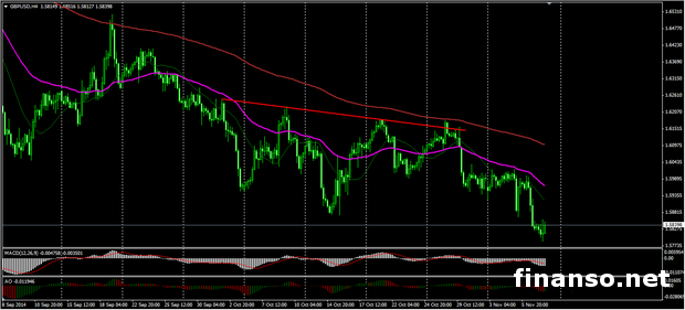 Покинув более низкую вершину на уровне 1.2552 к пробою поддержек 1,25 и 1,2440 привело очередное ускорение, в результате единая валюта на форекс-рынке упала ниже уровня 1,24, о чем пишут корреспонденты издания «Украина сегодня: Finanso.net».Как единственное значительное препятствие на пути рассматривается бычья трендовая линия, которая соединяет минимум 2005 г. - 1,1640, и 1,1875 - минимум 2010 г., в настоящее время находящееся в зоне 1,21. По мнению аналитиков компании FinFX, в ожидании данных из США по числу созданных рабочих мест, что ускорит потери по евро, в случае положительного релиза кратковременная ценовая активность пары евро-американский доллар осуществляется в узком боковом диапазоне. На обещаниях, что ЕЦБ готов сделать больше и в подтверждение готовности в значительной степени увеличить свой баланс, евро упал ниже уровня 1,24, самого низкого показателя с августа 2012 г. В то время как в заявлении управляющего совета ЕЦБ были намеки на возможные дальнейшие действия в плане нетрадиционных мер, ЕЦБ оставил главную ставку рефинансирования на уровне 0,05 процента. Может также повлечь за собой инъекцию фондов на 1 триллион евро в рынок для повышения размера баланса до трех триллионов, вследствие недвусмысленного указания на размер баланса, которого хотел бы достичь ЕЦБ, о чем рассказывает издание «Биржевой лидер». Sup: 1.2363; 1.2300; 1.2250; 1.2200 Res: 1.2400; 1.2440; 1.2470; 1.2500 GBP/USD обновил минимум.Отметив минимум на уровне 1,5823, упал еще ниже курс пары GBP/USD на форекс-рынке в четверг, 6 ноября. В ходе проходившей в этот день европейской сессии, а также при падении до 278 тысяч (288 неделей ранее) еженедельных заявок на пособие по безработице в целом лучше по всем направлениям финрынка выглядел USD, что повысило оптимистические прогнозы по занятости в США в октябре, согласно опубликованным вчера данным. На отрицательной территории на часовом графике находится осциллятор MACD. На рост курса валютной пары фунт стерлингов- американский доллар на форекс-рынке указывают столбики гистограммы. По мнению экспертов компании TurboForex, указывает на падение курса пары фунт стерлингов-американский доллар на форекс-рынке на четырехчасовом графике, так как на отрицательной территории находится MACD и виден рост столбиков гистограммы. Проходящая почти на одном уровне с 4-х часовой 55 ЕМА часовая 55 ЕМА и 200 ЕМА станет уровнем сопротивления для валютной пары в пятницу, 7 ноября 2014 г. Минимум четверга 1,5823 станет уровнем поддержки, далее 1,5729, 61.8 по Фибоначчи к росту 1,4812/1,7190. |