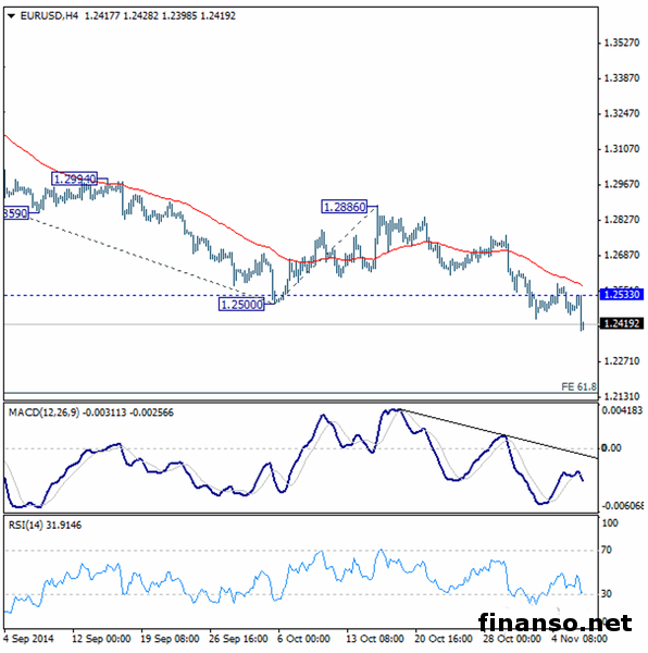 Достигнув минимума 1,2394, в четверг возобновилось снижение котировок пары EUR/USD. Невзирая на то что аналитики спрогнозировали намного более узкий коридор колебаний с разворотами в точках (R1) 1,2549, (P) 1,2502, (S1) 1,2439, пара прошла за день больше ста пунктов ниже минимума. На сессии в Азии нисходящее движение продолжилось. По мнению экспертов компании TraderGlobal, в результате так до конца и не сформировавшись, ожидаемый период консолидации закончился. Об этом сообщают корреспонденты издания «