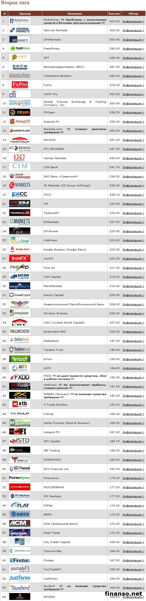 Отличным способом дополнительного заработка для многих жителей нашей планеты на сегодняшний день стал международный Форекс-рынок, а в правильном выборе для трейдера лучшим вариантом является анализ рейтинга, составляемого Академией трейдинга MasterForex-V, основанного на не зависящих друг от друга непредвзятых критериях. Об этом пишут корреспонденты издания «Украина сегодня: Finanso.net».Условно этот рейтинг разделен на три определенных блока : «Высшую лигу», «Вторую лигу» и «Третью лигу». К безупречной близка репутация брокеров Форекс–рынка в первой из них, пример с которых должны брать брокерские компании, находящиеся во «Второй лиге», стремящиеся, но пока не дотягивающие до безупречности в своей деятельности. Вторая лига, согласно академическому рейтингу от Masterforex-V.Набрав более 350 баллов по более двадцати факторам, лучшие Форекс-брокеры попадают в Высшую лигу о рейтинга Академии Masterforex-V, а все остальные занимают, соответственно, места во Второй и Третьей лиге. Вторая лига Во Вторую лигу Форекс-брокеров попали, став кандидатами в Высшую лигу: - на первом месте во Второй лиге находится компания «RoboForex», набрав 323 балла, применяющая современные технические инновации в трейдинге, поддерживая очень тесное партнерство с разработчиками программ в сфере брокерских услуг. В компании заинтересованы, чтобы инвесторы имели прямой доступ на международный рынок, выполняя в режиме non-dealing desk клиентские ордера. На Форекс-рынке РФ компания работает с 2010 года; - набравшая 303 балла компания «Admiral Markets» занимает второе место и работает в семнадцати мировых странах. Она получила лицензию ЕС, работает на рынке с 2009 г. и имеет уставный капитал в полтора миллиона долларов. Открыть депозит для торговли на финрынке здесь можно от десяти долларов; - брокерская компания «UFXMarkets» замыкает тройку лидеров, предлагая большой выбор активов для трейдеров. Среди привлекательных условий для торговли у брокера есть возможность быстрого пополнения и вывода средств, несколько видов счетов, отсутствуют проскальзывания, фиксированные спреды, имеется круглосуточная поддержка и индивидуальное обучение. Остальные компании, предоставляющие брокерские услуги на Форекс-рынке, расположились следующим образом: -FreshForex; - GFT; - Брокеркредитсервис (БКС); - Interactive Brokers; - FxPro; - CitiFX Pro; - Global Futures Exchange & Trading Company, Inc.; - FXOpen; - Arsenal-FX; - Markets.com; - MAYZUS; - ATC BROKERS; - Hantec Markets; - CIM Bank; - ЗАО Банк «Советский»; - IG Markets (IG Group Holdings); - FXCC; - XM; - TadawulFX; - ECMarkets. |