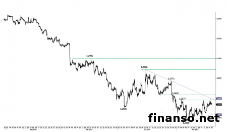 Продолжает свой рост выше пара EUR/USD, не затронув вместе с тем сопротивление в точке 1,2577 (на нисходящей трендовой линии). На отметке 1,2632 находится другое сопротивление, а на уровнях 1,2444 (минимуме 18 ноября 2014 г.) и 1.2502 (внутридневном минимуме) можно найти часовые поддержки. Об этом пишут корреспонденты издания «