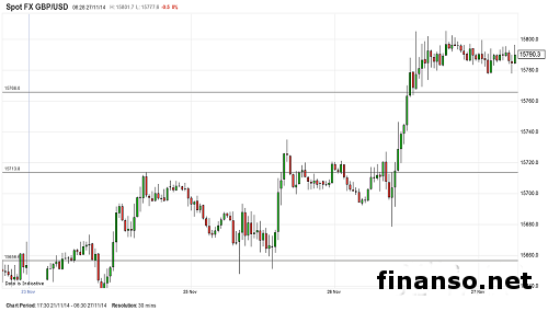 Определенный рост, в пределах 0,7 процента, по завершении четвертого квартала, показала британская экономика, или три процента в пересчете на год, что соответствовало ожиданиям экспертов. По сообщению экспертов МОФТ, на фоне того, что участники рынка закрепили прибыль по британской валюте по short-позициям, из-за чего ей (в паре с долларом) удалось вернуться к точке 1,5850, добавило участникам финрынка оптимизма. Об этом пишут корреспонденты издания «Украина сегодня: Finanso.net».Комментарии главы ЕЦБ понизили ожидания запуска этим регулятором соответствующей программы экономического стимулирования региона на предстоящем собрании, что привело к восстановлению в паре евро-доллар. Исключать возможного отскока выше все же не стоит, хотя невзирая на это, появились позитивные факторы для единой валюты. Выхода новых показателей ждут рынки.В связи с закреплением прибыли по американской валюте, вышедшие в среду довольно слабые статданные по США помогли скорректироваться фунту и евро. Как сообщают аналитики Форекс-рынка, доллар и дальше может испытывать давление, поскольку трейдеры ожидают публикации более важных показателей по рынку труда, а сложившаяся макроэкономическая ситуация в тренд особых изменений не внесла. День Благодарения в США является официальным выходным, и сегодня, 27 ноября, в 11:55 необходимо ожидать статданных по количеству безработных и уровню безработицы в Германии; в 13:00 будут объявлены статданные в еврозоне по потребдоверию; к 16:00 будет оглашен гармонизированный за месяц и в пересчете на год показатель по ценам немецких потребителей; заседание (ОПЕК). Об этом рассказывает издание «Биржевой лидер». Немалую важность несут для единой валюты статданные Германии по потребценам. Ускорение инфляции будет содействовать восстановлению евро, а ее замедление, по мнению экспертов МОФТ, подвергнет евро давлению. Ввиду очень низкой ликвидности на такое событие слишком эмоционально могут отреагировать финрынки. В связи с празднованием Дня Благодарения в США, по прогнозам, никаких сюрпризов не должно быть на американской сессии. Ждать выхода новых статпоказателей по США и еврозоне должны, в целом, трейдеры, продолжив анализ полученных ранее сведений, способных в определенной мере отразиться на направленности мировых валют. |