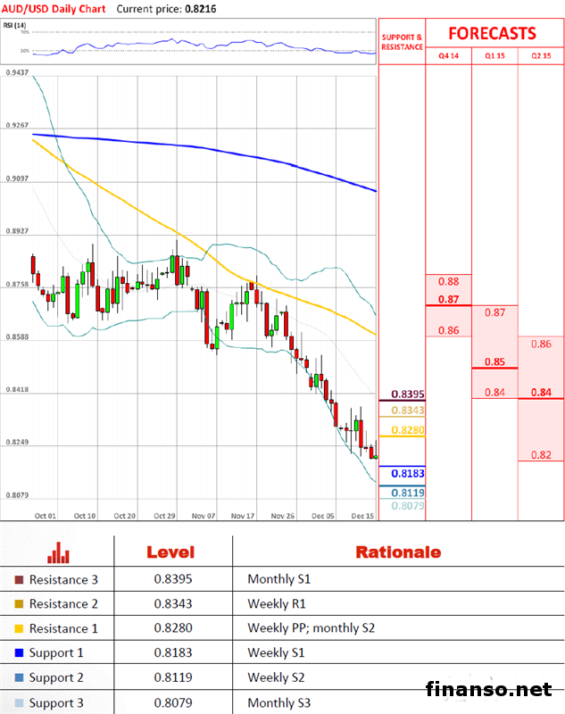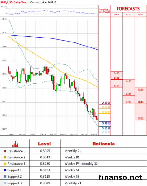![]() "Это был довольно тяжелый день для австралийской валюты после того, как рынок закончил неделю в плохом настроении, а стоимость железной руды снизились к вечеру пятницы", - утверждает Westpac Перспективы валютной пары Валютная пара AUD/USD все пока не смогла найти надежной поддержки для прекращения падения. Австралийский доллар достиг очередного минимума текущего года на уровне 0,8205 против доллара США. Вероятно, поддержка появится около уровня 0,82 и недельной S1. По всей видимости, очередной минимум окажется на уровне 0,8183. Но уже в конце 2014 – начале 2015 года эксперты ожидают дальнейшее снижение к уровню 0,80, о чем также свидетельствуют недельные и дневные технические индикаторы. Настроения участников рынка Трейдеры уверены в том, что австралийский доллар сильно недооценивается. На данный момент 70% позиций являются длинными. В то же время количество заявок на покупку составляет 40%, а на продажу - 60%. По материалам Dukascopy. |