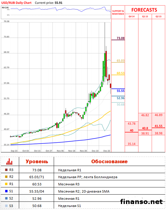 «Это напоминает решительную стратегию Саудовской Аравии, в соответствии с которой на рынке нужно нейтрализовать всех слабых игроков, которые при ценах ниже 60 американских долларов за баррель или даже ниже 50 долларов США за баррель нефти просто не могут выжить», - Again Capital (по материалам РИА «Новости»). Обзор рынка.Российская валюта продолжила укрепляться по отношению к основным мировым валютам, в том числе и американскому доллару, с первого дня новой недели. Невзирая на то что валютная пара доллар/рубль завершила торговый день значением 55,91, на протяжении сессии пара опускалась вплоть до значения 54,85. Тем не менее не может исключаться вариант, что данное движение является краткосрочной коррекцией, и совсем скоро мы в очередной раз увидим падение российского рубля. В свою очередь, аналитики отмечают, что многое в ближайшие недели будет зависеть от движения цен на нефть на мировых биржах. Кроме того, технические индикаторы предполагают, что пара доллар/рубль будет торговаться в боковом тренде в долгосрочной перспективе. Сентимент.Уже третий день подряд не меняется количество длинных позиций по американскому доллару. В настоящее время американскую валюту против российского рубля готовы покупать порядка 71 процента трейдеров Форекс-рынка. По материалам Dukascopy. |
