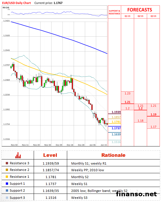 Бывший премьер-министр Испании Хосе Мария Асмар заявил: «Я думаю, что это неизбежно, что ЕЦБ примет решение о количественном смягчении».В чем перспективы пары?На Форекс валютная пара евро/доллар показала одну из наибольших волатильностей как минимум за семь дней, несмотря на то, что изменения за день были небольшими. За день торговый диапазон составил 120 пунктов. Однако кросс, несмотря на это, по-прежнему колеблется вблизи месячной S2 на 1,1780, ожидая более сильного импульса, который продвинет пару в каком-либо направлении. И так как пара в настоящее время поддерживается дневными техническими индикаторам, которые являются негативными, то перспектива по единой валюте остается медвежьей. О чем говорят трейдеры Форекс?Так как доли медведей (48 процентов) и быков (52 процента) практически равны, то настроение рынка по EUR/USD остается довольно нейтральным. При этом, так как те ордера, что выставлены на покупку составляют 46 процентов (32 процента вчера), то отложенные ордера остаются медвежьими. По материалам: Dukascopy |