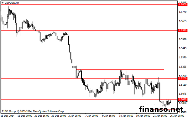 У отметки 1,5020 к концу торговой сессии в США торговался курс фунт/доллар. Вблизи отметки 117,80 к закрытию дня установился курс доллар/иена. С уровня 1,1113 до 1,1287 на этой торговой сессии, после падения в течение последних суток, скорректировался курс евро/доллар, как отмечают эксперты, в прошедшую пятницу. Об этом пишут корреспонденты издания «Украина сегодня: Finanso.net».Регулятор готов сделать больше, если недостаточным окажется эффект от принятой ЕЦБ программы количественного смягчения, о чем заявил в прошедшую пятницу представитель Управляющего Совета Центробанка Кере. По мнению экспертов FIBO Group, ограниченной будет эффективность программы QE, согласно оценкам агентства Moody's. Частично нивелируют инфляционную составляющую QE падение цен на нефть, и ограниченное значение на состояние кредитного рынка имеют покупки облигаций, поскольку участниками рынка ожидалось принятие программы QE. Больше вниз двигались американские фондовые индексы в прошедшую пятницу. На 0,16 процента вырос индекс Nasdaq, а индекс S&P 500 опустился на 0,55 процента, при этом упал на 0,79 процента индекс Доу Джонс Нью-Йоркской фондовой биржи, а индекс Stoxx 50 вырос в прошедшую пятницу на 1,80 процента. На Британской фондовой бирже индекс FTSE 100 вырос на 0,53 процента, в то время как рост индекса Xetra DAX Франкфуртской биржи вырос на 2,05 процента. При предыдущем значении 4,92 млн. и прогнозе 5,05, по итогам за декабрь, Existing home sales в США составил 5,04 млн. При предыдущем значении +0,6 процента и прогнозе +0,4 процента, +0,5 процента за декабрь составил Leading indicators в США. Об этом рассказывает издание «Биржевой лидер». Технический анализ.Против прогноза 54 пункта фактически 53,7 пункта составил в январе в первом чтении индекс деловой активности PMI США в обрабатывающей промышленности. Против прогноза 0,48. USDX, -0,05 составил в ноябре индекс национальной активности ФРБ Чикаго. Вблизи психологической отметки 95 продолжалась торговля вчера. 95,70 является ближайшим сопротивлением, а ближайшей сильной поддержкой стала 94,26. 93 и 90 явились значимыми целями поддержки. Меньше одного месяца, с другой стороны, понадобилось маркетмейкерам для преодоления диапазона 90-95. Удержав пару GBP/USD от последующего снижения, после обвала котировок в область 49-й фигуры, спрос на нее увеличился, - таким является текущее состояние рынка. Паре не удается возобновить рост, зафиксировавшись над уровнем сопротивления 1,5030. Все еще остается приоритетным сценарием в таком случае в рамках медвежьего сценария последующее ослабление пары. Поскольку это укажет на смену настроений в краткосрочном периоде, указанный сценарий будет актуальным до момента фиксации котировок над отмеченным уровнем. По сообщению аналитиков FIBO Group, нисходящим является основной тренд (D1). |