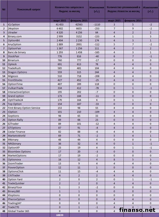 Названы ТОП популярных брокеров бинарных опционов за мартКатегория: Форекс