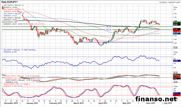 Денежные рынки принимают неопределенность переговоров Греции и ее кредиторов достаточно спокойно. Несмотря на очень реальный риск дефолта 30 июня, рынки держатся на удивление хорошо. На ключевых рынках наблюдалась нехватка реального давления продаж, в то время как классические активы–убежища, такие как золото, иена и швейцарский франк, торговались в диапазоне наряду с другими рынками вместо того, чтобы ловить предложение. Следующие два дня имеют решающее значение для переговоров. Ангела Меркель предупредила о серьезности ситуации и сказала, что соглашение должно быть подписано в выходные дни. Национальные парламенты должны голосовать по предложениям, и это все должно быть сделано до истечения срока погашения Грецией 1.6 млрд. евро во вторник. Подробностями интересовались корреспонденты издания «Украина сегодня: Finanso.net».По информации издания по экономике и предпринимательству онлайн «Биржевой лидер», валютные рынки вошли в европейскую сессию в режиме консолидации, но евро и фунт стерлингов чуть ниже. Австралийский и новозеландский доллары были главными двигателями, поскольку они отскочили немного, реагируя на наплыв предложений на продажу в Китае. Драгоценные металлы также остаются слабыми. Сегодня трейдеров ожидает небольшой блок экономических объявлений, на которые стоит обратить внимание: только пересмотренный индекс потребительских настроений от Университета Мичигана в 17.00 по мск, который, как предполагается, выйдет на уровне в 94,6 пункта, не показывая никаких корректив. Как всегда, на самом деле, акцент будет оставаться на сообщениях по поводу прогресса, или фактического отсутствия в переговорах по Греции. Валютная пара евро/иена снова беспокоит специалистов.Пару недель назад эксперты говорили о возможности пары валют евро/иена откатиться назад в направлении до ступени в 126,95. По той простой причине, что старое сопротивление считается обновленной поддержкой, каждый откат будет считаться важным шансом, чтобы приобрести. Более позитивный среднесрочный прогноз пришел с главным паттерном, и с того периода есть явная консолидация по паре валют евро/иена, что дала отличную возможность «бычьим» индикаторам импульса сильно расшириться, четко восстановить потенциал роста. В то же время RSI смогла успешно вернуться обратно, до уровня в 50, а линии стохастика готовы идти на дно снова, по данным Richard Perry, аналитика рынка брокера Hantec Markets. |