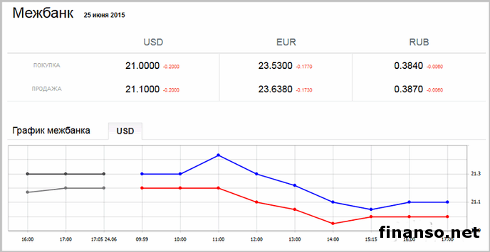 В рамках продаж 25 июня текущего года на межбанковской бирже доллар США в гривенном выражении сильно упал. В связи с ростом предложения долларовый курс снизился к уровню в 21,10 гривны за доллар. Подробностями интересовались корреспонденты издания «