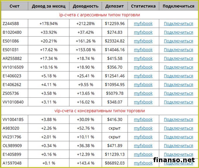Лето в самом разгаре. Торговля замирает на мировых площадках и у наших трейдеров. Активность торговли падает в эти жаркие дни - народ предпочитает воду и пляжи скучным цифрам и графикам. Подробностями интересовались корреспонденты издания «Украина сегодня: Finanso.net».Однако 50 самых успешных трейдеров из Академии Masterforex-V за прошлый месяц сумели продемонстрировать доход более 19 000 пунктов профита, из них • vip-счета смогли получить 10 798 пунктов (это составляет порядка 55,68 процента от общего числа пунктов); • 1-10 места получили 4 298 пунктов (22,16 процента); • 11-20 места получили 2 607 пунктов профита (13,44 процента); • 21-34 места получили 1 690 пунктов дохода (8,71 процента). Общее число дохода в прошлом месяце в пунктах - 19 393. По графикам становится понятно, что вип-счета выбранных трейдеров генерируют свыше 50 процентов дохода от всех трейдеров проекта pro-rebate.com – свыше 55 процентов. «Это совсем неудивительно, – констатирует проректор из Академии Masterforex-V Сергей Черепанов (на форуме ник Rich Man). - Потому что трейдер, который ведет торговлю прибыльно довольно долгий период времени, имеет шансы на получение наивысшего дохода из своей торговой системы». Это как раз и отражается на его результатах. Помимо всего прочего, несмотря на летнее снижение активности, инновационный сервис pro-rebate.com вносит определенные изменения в предоставление данных для потенциальных вкладчиков, о чем аналитики информационно-аналитического издания «Биржевой лидер» узнавали у Сергея Черепанова (на форуме ник Rich Man). Как рассказывает Сергей Черепанов (Rich Man), для фактического улучшения качества предоставляемых услуг потенциальным клиентам портал pro-rebate.com активно совершенствуется. Уже с прошлого месяца решено было ввести специальный рейтинг самых стабильно торгующих трейдеров, так называемые вип-счета. Этот рейтинг создан на основе стабильно получаемого заработка счетов, что делятся на 2 подтипа: счета с агрессивным стилем работы трейдеров, при котором растет общее число сделок и риски. Однако, помимо прочего, фиксируется серьезный рост дохода счетов с консервативным типом торговли, при котором целью трейдеров является сохранение депозита, в связи с чем количество сделок невелико. Таблица вип-счетов стабильно торгующих трейдеров.Лучшие трейдеры pro-rebate.com продолжают применять счета у 6 брокеров:- часть компании Норд ФХ выросла до 50 процентов; - второе место по числу открытых счетов - у брокера FBS с 18 процентами; - третье место - у брокера YA-HI с 12 процентами открытых счетов; - брокеры Arsenal FX, FIBO Group и Larson&Holz имеют 2, 4 и 2 процента открытых счетов соответственно. |
