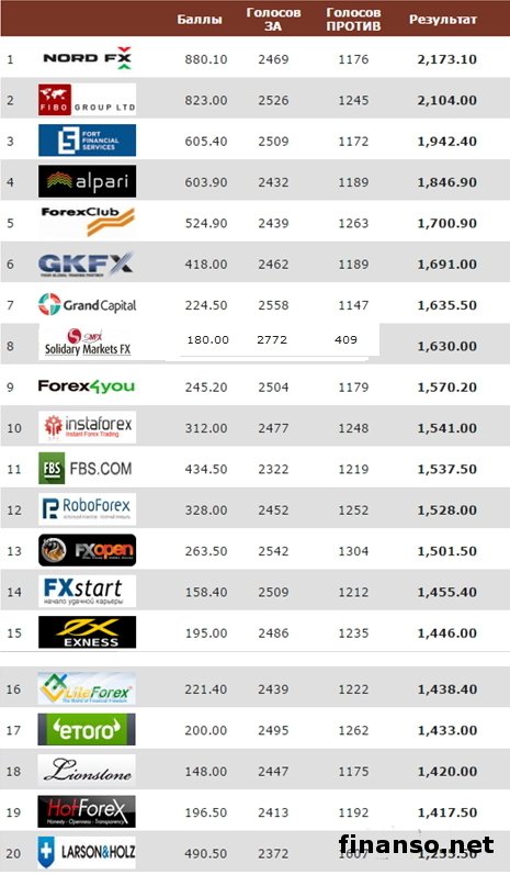 Микро-брокером считаются брокеры международного рынка валют Форекс, начав сотрудничество с которыми сам трейдер может обладать символическим стартовым капиталом. Параллельно с этим микро-брокер дает возможность открытия обычных счетов, вести работу с ними. Таким образом он показывает, что микро-вложения могут не рассматриваться в виде достойного источника средств. Но весьма важно понимать: влияние, которое оказывают микросчета на валютный рынок Форекс, переоценить достаточно трудно. Эксперты Академии Masterforex-V сформировали рейтинг популярности самых успешных микро-брокеров международного и отечественного рынка валют Форекс, что предлагает открыть на их платформах торговли микросчета. Лучшие микро-брокеры Форекс по состоянию на август 2015 года.Место каждого, отдельно взятого брокера в специальном рейтинге от Академии формируется на основе подсчета общего числа баллов. А эти баллы, в свою очередь, начисляются исходя из 2 важных факторов. Первый из них - профессиональная оценка независимых специалистов. Второй - оценка результатов проводимого голосования простых трейдеров. Оно проводится на официальном портале Академии Masterforex-V на постоянной основе. Также стоит отдавать себе отчет в том, что все брокеры, принимающие активное участие в рейтинге, борются за звание лучшего микро-брокера нынешнего 2015 года. Конечно же, сейчас еще очень рано рассуждать о победителях. Но уже известны предварительные результаты, брокеры, которые имеют все шансы стать лидерами рейтинга по результатам целого года. Таким образом, на начало июня нынешнего года лидирующие в рейтинге Masterforex-V EXPO микро-брокеры располагаются таким образом: По таблице четко видно, что: - первое место - брокерская компания «Nord FX» (Норд ФХ) с 2173 баллами. Nord FX/NordFX в 2012, 2013 году становился обладателем звания лучшего микро-брокера мира; - второе место - брокерская компания валютного международного рынка «FIBO Group». Именно этот брокер набрал 2104 балла. FIBO Group входит в список финансового международного холдинга, который обеспечивает высокую ликвидность брокера; - третье место - брокерская компания «Fort Financial Services». Она на данный момент времени смогла заработать 1942 балла. Брокер работает последние пять лет. За это время у компании успела сформироваться команда настоящих профессионалов с большим опытом и багажом необходимых знаний. Далее участники рейтинга располагаются таким образом: - Форекс Клуб; - Alpari; - GKFX; - Arsenal-FX; - Grand Capital; - Forex4you; - FBS Markets Inc.; - InstaForex; - RoboForex; - FX Start; - FXOpen; - EXNESS; - eToro; - LiteForex; - Lionstone Investment. |