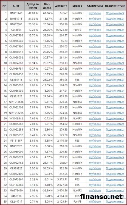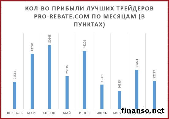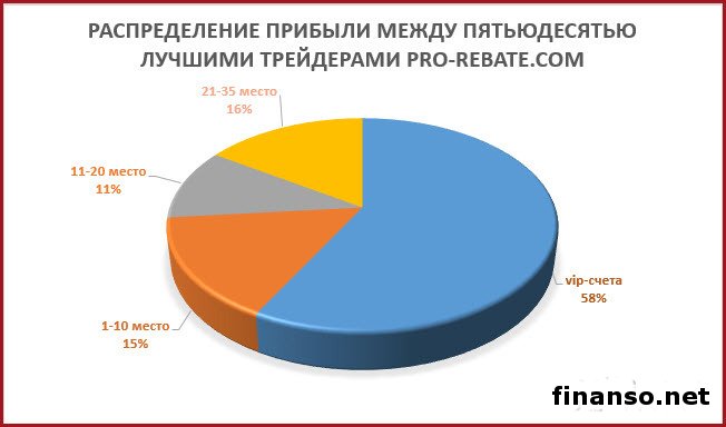 Половина осени позади, мы снова обращаемся к проректору известной всем Академии Masterforex-V Сергею Черепанову (ник на форуме Rich Man), курирующему ныне трейдеров инновационного проекта pro-rebate.com. Подробностями интересовались корреспонденты издания «Украина сегодня: Finanso.net».По сообщениям портала по экономике «Биржевой лидер», такие общемировые финансовые инструменты, как Nikkei 225, S&P 500, Dow Jones и тому подобные, второй осенний месяц провели в закономерном восстановлении позиций после снижения на протяжении минувших месяцев. При этом золотые и нефтяные фьючерсы продавались разнонаправленно. Именно этот факт в результате наложило личный отпечаток на сложности торговли, сразу отразилось на небольшом падении дохода самых лучших трейдеров из проекта pro-rebate.com. Сколько на этот раз удалось заработать трейдерам pro-rebate.com.Таким образом, на протяжении октября месяца трейдеры проекта pro-rebate.com получили: Общее число дохода в пунктах - 22217 из них • ВИП-счета получили примерно 12855 пунктов (что равно 57,86 процента, от общего числа пунктов); • с 1 до 10 позицию = 3474 пункта (15,64 процента); • с 11 до 20 позиции = 2409 пунктов профита (10, 83 процента); • с 21 до 36 позиции = 3482 пункта дохода (15,67 процента). Несмотря на этот факт, все ВИП-счета самых лучших трейдеров и дальше по традиции получают примерно 50% всего дохода ТОП-50 самых лучших трейдеров. По информации Rich Man, на протяжении всего прошлого месяца ВИП-счета продемонстрировали свыше 57 процентов от всего заработка зарегистрированных счетов. На протяжении октября текущего года общая таблица ВИП-счетов самых лучших трейдеров pro-rebate.com выглядела следующим образом: Ключевая таблица лучших трейдеров pro-rebate. Обще число брокеров, у которых были открыты счета лучших 50 трейдеров сайта pro-rebate.com, немного снизилось. Точнее говоря до четырех привычных всем брокерских компаний. Три из них занимают ТОП-пятерку рейтинга брокерской компании MasterForex-V. В настоящее время ТОП-50 лучших счетов распределяются по брокерам таким образом: - часть компании-брокера NordFX выросла до 69 процентов от общего числа брокеров; - второе место досталось брокеру FBS с 21 процентом; - брокерская компания FortFS занимает третью позицию с 8 процентами открытых счетов; - четвертое место отдано по праву брокеру FIBO Group. |