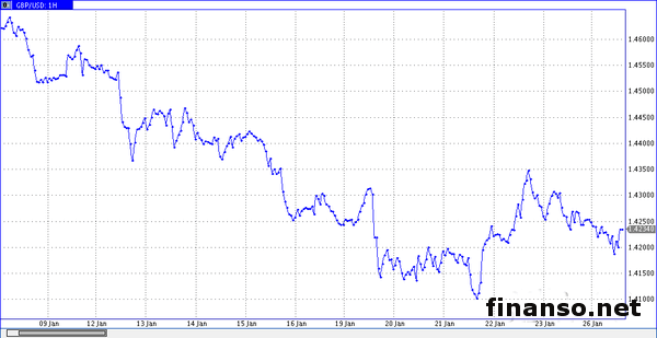 26 января быкам удастся взять паузу. В таком случае, по всей видимости, возможно плавное снижение котировок английского фунта на лондонских торгах. В разгар европейских продаж пройдет выступление руководителя британского Банка Марка Карни. Он даст свои комментарии в рамках слушаний спецкомитета Казначейства. Сложно ждать положительных заявлений от Марка Карни. Замедление темпов роста средней заработной платы в сумме с падением нефтяных цен способствуют ослаблению кратковременных ожиданий инфляции. «Укрепление фунта вместе с парой евро/доллар в нынешнем году оказывает давление на английское производство», – отмечает специалист брокера-компании