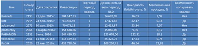 Авторитетными трейдерами Академии MasterForex-V продолжается онлайн-тестирование ПАММ-счетов брокера PrivateFX и его новой разработки, которой является сервис «Активный инвестор». Корреспондентам издания для инвесторов «Украина сегодня: Finanso.net» стали известны результаты экспертных оценок за март текущего года.ПАММ-счета PrivateFX стали эталоном инвестирования.Согласно информации на конец марта 2016 года, число активных ПАММ-счетов в PrivateFX составило 154. Это на 34 единицы (или 28,3 процента) превышает показатель минувшего месяца. Такие впечатляющие данные стали очередным подтверждением высокого качества услуг, которые предоставляет брокер, и возможностей управляющих ПАММ-счетами эффективно торговать на Форексе и при этом хорошо зарабатывать самим и позволять получать доход своим клиентам. В процессе тестирования трейдеры Академии MasterForex-V определили семь лучших ПАММ-счетов PrivateFX, которые заслужили внимание инвесторов. Управляющий с псевдонимом Kuznets пользуется доверием среди своих клиентов. Его счет является одним из наиболее стабильных. Ну а возможность получения прибыли вне зависимости от того, каковы условия на рынке, прошла прочную проверку временем. ПАММ-счетом Kirr предлагается копирование. Его чертой является высокая доходность, поэтому совершенно очевидно, что им заинтересуются сторонники агрессивных стратегий. Начиная с декабря 2015 года, не было допущено ни одной существенной просадки, а ее максимальный показатель составил 0,16 процента. Такой счет, как advanced, возник примерно три месяца назад. На нем не позволяется копирование сделок. Вместе с тем доходность здесь еще выше, чем у прежнего ПАММа – 53,34 процента. Наверняка инвесторов заинтересует ПАММ plotnichiy. И хотя он не так давно существует, трейдеру удалось получить доходность 9,39 процента при максимальной просадке 0,17 процента. С января текущего года начал работать счет Paramon, который, по оценкам специалистов, может заинтересовать крупных агрессивных инвесторов. Управляющему удалось привлечь более 244 тыс. долл. капитала и обеспечить самую высокую среди лидеров прибыль в 122,31 процента. Свыше 315 тысяч долларов приблизительно за два месяца было привлечено на счет votFXreal. Трейдер применяет консервативную стратегию торговли. Счет ПАММ Patrik за два месяца привлек наибольший капитал – более 432 тыс. долл. У данного ПАММа есть возможность осуществлять копирование сделок. |
