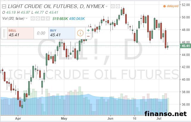 На днях нефтяная стоимость марки Brent снизилась до уровня в 46,16 доллара. Самая высокая стоимость за торговую сессию 7 июля была равна 49 долларам за номинальный объем. Подробностями интересовались корреспонденты информационно-аналитического издания «