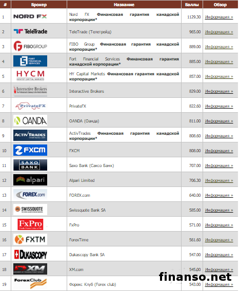 Эксперты Академии трейдинга MasterForex-V все время создают рейтинги брокерских компаний, работающих на Международном валютном рынке Форекс, к тому же по наиболее разнообразным категориям, сообщают корреспонденты издания «Украина сегодня: Finanso.net». Каждый из них так или иначе обладает отличиями от любого иного своей прозрачностью и многогранностью. Аналитики «Биржевого лидера» и Masterforex-V Expo назвали брокеров, попавших в Высшую лигу рекомендованных брокеров Форекс за декабрь 2016 года.- место лидера сохраняет компания «Nord FX\NordFX». Она известна на весь мир и предоставляет возможность открытия пробного счета новичкам, для того, чтобы те смогли испытать собственные силы. - вторая позиция закреплена за «TeleTrade». Это не только брокер, это настоящий глобальный бренд, который оказывает инвесторам по всему миру услуги на международном финансовом рынке. - на третьей позиции находится брокер «FIBO Group», который является одной из старейших брокерских компаний. Она была основана в 1998 году и с самого начала своей работы и до сих пор показывает высокие стандарты работы с трейдерами. Далее участники рейтинга расположились в следующем порядке: - Fort Financial Services; - HY Capital Markets; - Interactive Brokers; - PrivateFX; - OANDA; - ActivTrades; - FXCM; - Saxo Bank; - Alpari Limited; - FOREX.com; - Swissquote Bank SA; - FxPro; - ForexTime; - FxPro; - Dukascopy Bank SA. - ХМ; - Форекс Клуб (Forex club). |