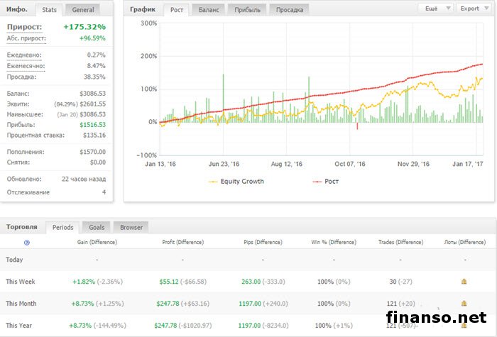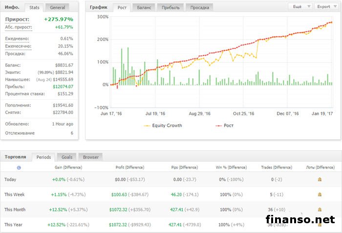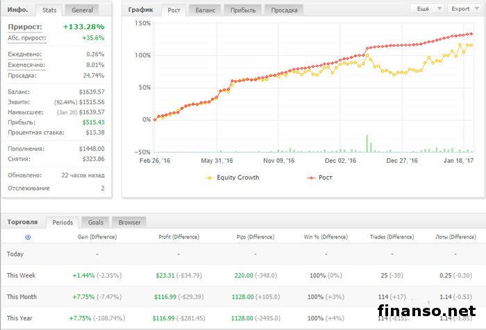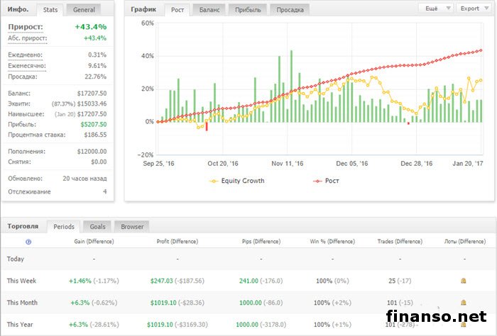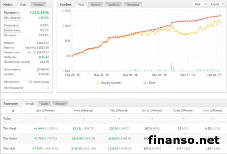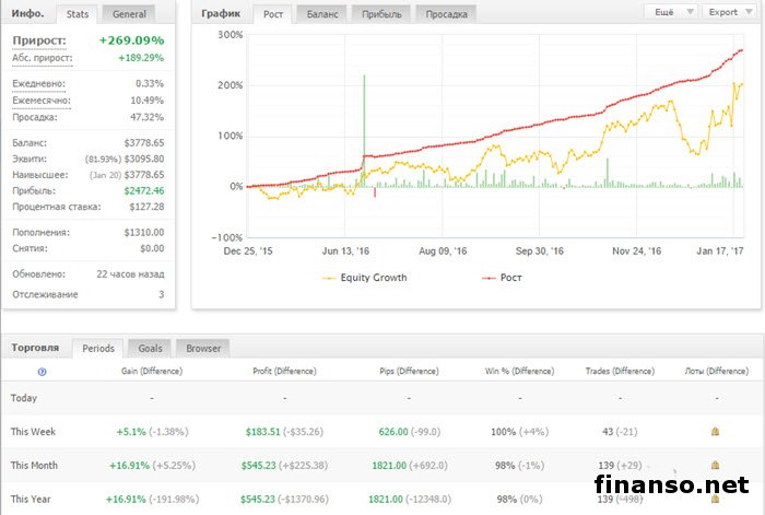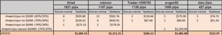Пассивный доход, который получают с помощью LAMM-автокопирования операций на финрынке от торговли трейдеров Академии Masterforex-V, бьет рекорды, сообщают аналитики. "Таким образом, по результатам первых недель января пять трейдеров Masterforex-V принесли доход вкладчикам в 5573 пункта (около 5,5 тыс. долларов при торговле 0,1 лота)", - констатирует проректор Академии Masterforex-V Сергей Черепанов для "Биржевого лидера".Этот эксперимент бесплатного трехмесячного автокопирования благодаря сервису pro-rebate.com интересен тем, что Академия МФ: а) следит за осуществлением манименеджмента МФ, в результате чего "беспроигрышные торговые счета" Академии ограничены при просадке и приносят большой доход; б) отсеяла трейдеров-мартингейлов. "Таким образом, 60 самых лучших трейдеров Академии Masterforex-V, сохраняя ММ, получили за 2 недели января более 42 тыс. пунктов дохода, из них пятерка VIP-трейдеров принесла прибыль в 5573 пункта", - сообщил Сергей Черепанов (Rich man). Какие итоги продемонстрировали VIP-трейдеры Masterforex-V в 2017 году?Самый лучший итог за 2 недели января продемонстрировал трейдер Академии Itriad, который заработал 1821 пункт дохода при приросте депозита на 16,91% или 545,23 доллара, при торговле 0,03 лота при 3,7 тыс. торгового депозита: На второй позиции - трейдер rubicon с прибылью в 1197 пунктов с приростом депозита на +8,73%, плюс к личному счету 247,78 доллара при торговле 0,02 лота при 3,7 тыс. депозита у брокера: Третья строчка принадлежит трейдеру Trader-1059752 с 1128 пунктами дохода и приростом депозита в +7,75% или 116,99 доллара: Четвертое место принадлежит трейдеру с ником evgen50, который заработал за первые 2 недели наступившего года 1000 пунктов, что дало прирост депозита в +6,3%, заработав при этом 1019,10 доллара США: Пятое месте, как и раньше, занимает трейдер Alex-Zein, который показал за январь прибыль в 427 пунктов, что дало прирост депозита в 12,52%, плюс на личном счету 1072,32 доллара: Сколько зарабатывают трейдеры, управляющие счетами инвесторов?Благодаря вкладчикам Клуба инвесторов Masterforex-V, которые предоставили свои инвесторские счета для анализа, можно оценить и продемонстрировать всем трейдерам, как зарабатывать в пять раз больше, чем осуществляя торговлю на собственном счету. Трейдеры, получившие инвестсчета в управление, уже сегодня получают на 30-50% больше за счет автокопирования их сделок крупными инвесторами: |