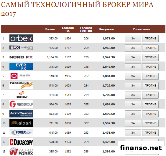 Как выяснили корреспонденты "Украина сегодня: Finanso.net", трейдер, который находится в поиске брокерской компании в первую очередь должен обратить внимание на большое количество факторов. Например, размер кредитного плеча для одной категории трейдеров может быть важен, в то время как для другой важна величина спреда. Однако есть и такие трейдеры, которые желают сотрудничать с самым прогрессивным брокером в технологическом плане.Но чтобы выбрать максимально технологичного брокера, нужно хорошенько постараться, так как между брокерскими корпорациями существует огромная конкуренция. Каждая из них старается стать лучше, чем ее соперник по всем параметрам. Часто случается и так, что трейдеры, делая выбор брокерской компании, ведутся на громкую рекламу, поэтому и совершают основную ошибку. Специалистами Академии Masterforex-V создан рейтинг, проанализировав который можно выявить ведущих брокеров в номинации «Самый технологический брокер мира» и аутсайдеров. В номинацию на самого технологичного брокера мира включены корпорации, которые входят в самый авторитетный на сегодня международный рейтинг Форекс-брокеров Академии Masterforex-V. Рейтинг самого лучшего технологичного брокера в апреле 2017 года. Как видим: - первое месте в данном рейтинге занимает корпорация Orbex, основанная в 2010 году и завоевавшая доверие международных трейдеров за счет комфортных условий и надежности финопераций. Всего за пару лет Orbex из маленкой кувейтской компании вырос до лидерских мест на рынке Форекс. Сейчас Orbex активно действует не только на всём Ближнем Востоке, но и в Европе, Южной Америке, Австралии, Канаде и Африке. Главной офис находится на Кипре; - второе место принадлежит SFX MARKETS, инвестиционной брокерской компании нового поколения, которая обеспечивает прямой доступ к межбанковской ликвидности и исполнение ордеров по технологии STP; - третье место занимает NordFX – брокер, входящий в ТОП-3 самых популярных брокеров Академии. К преимуществам компании можно отнести огромный опыт работы на Форекс, диверсификацию рисков клиентов, наличие международных лицензий, низкие спреды и многое другое. Далее следуют: - EverFX; - Squared Financial; - Форекс Клуб (Forex club); - Finam (Финам); - FIBO Group; - ActivTrades; - Alpari Limited; - FOREX.com; - Dukascopy Bank SA; - World Forex; - PROFIT Group Inc; - Admiral Markets; - EXNESS (Экснесс); - RoboForex; - AvaFX; - LiteForex; - ADS Securities London; - MRC Markets; - IronFX; - Exante; - 10Markets. Голосование в гонке «Самый технологический брокер мира в 2017 году» продолжается. Каждый желающий может отдать свой голос в пользу или против конкретного брокера. Для этого нужно всего лишь посетить страницу рейтинга. Действует ограничение по IP. |