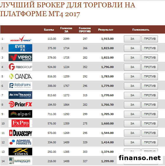 Как выяснили корреспонденты "Украина сегодня: Finanso.net", платформа MT4 представляет собой особый терминал, созданный в свое время, чтобы значительно облегчить доступ к торговому счету MetaTrader. Реализовать этот процесс можно за счет применения обычного интернет-браузера, работающего в режиме реального времени.Когда трейдер входит в терминал, он сразу же получает шанс следить за всеми текущими операциями и котировками, анализируя их. Трейдер, кроме всего, может торговать валютами, товарами и индексами. Он применяет в своей работе все необходимые пакеты инструментов для осуществления теханализа. На сегодня такую возможность предоставляет большое число брокерских корпораций. Поэтому определиться с выбором бывает сложно. В номинацию на лучшего брокера для торговли на платформе МТ4, входят компании наиболее авторитетного на сегодня международного рейтинга брокеров Форекс Академии Masterforex-V. Как видно из таблицы в номинации учитываются и баллы рейтинга (EverFX - 375,0 балла, у AccentForex – 118, и т. д.). Лучший брокер для торговли на платформе МТ4. Из данных таблицы видно, что: - первое место занимает «AccentForex». Основной целью является предоставление услуг высокого качества в области интернет-трейдинга. Главные приоритеты в деятельности с клиентами для брокера: максимальная точность в услугах, простота использования продуктов, быстрое осуществление ордеров и заявок клиента. AccentForex большое значение придает освоению инновационных технологий, уникальных предложений и перспективных направлений; - на втором месте – корпорация «EverFX», основанная на Кипре в 2015 году и являющаяся торговой маркой компании ICC Interceptus Capital Ltd. EverFX предоставляет надежную и эффективную торговую среду трейдерам с любым уровнем опыта. Корпорация поддерживает клиентов на каждом этапе, предоставляя наиболее конкурентные условия для торговли, в том числе моментальное исполнение, низкие спреды, обучающие ресурсы мирового класса и удобный ежедневный анализ; - тройку лидеров замыкает ««Vipro Markets Ltd», предоставляющий услуги трейдерам во всех уголках земного шара. Корпорация предлагает возможности торговли на индексах, валютных парах и драгоценных металлах (серебро и нефть марки WTI, золото), а также обеспечивает ликвидность высокого качества и спред от 0,0 пунктов и быстрое исполнение сделок. Далее следуют такие брокеры-Форекс: - FIBO Group; - Oanda; - RoboForex; - ActivTrades; - PriorFX; - Alpari Limited; - FxPro; - Dukascopy Bank SA; - Admiral Markets; - EXNESS (Экснесс); - Windsor Brokers; - Forex4you; - MAXiFOREX; - InstaForex (Инстафорекс); - FXOpen; - A-Markets; - Broco. Напомним, что голосование все еще продолжается, а значит отдать свой голос, правда, с ограничением по одному IP может любой трейдер зайдя на страницу по выбору лучшего брокера для торговли на платформе МТ4 |