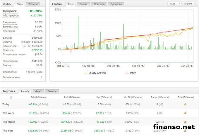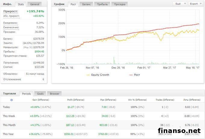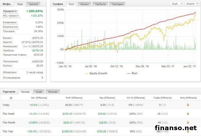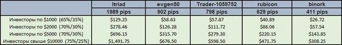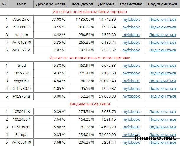 Как передают корреспонденты "Украина сегодня: Finanso.net", беспроигрышные счета Форекс из новой книги Masterforex-V "Секреты инвестирования на Форекс от клуба инвесторов Masterforex-V" продолжают давать инвесторам пассивную прибыль, превышающую банковские депозиты, а методика беспроигрышных счетов Форекс Masterforex-V приносит доход и инвесторам, и трейдерам, давая им возможность избежать поспешности и суетливости в торговле, увеличивая ее качество. Счета VIP-трейдеров уже в течение 2 лет остаются в ТОП-10 счетов автокопирования pro-rebate.com.Итоги VIP-трейдеров Masterorex-V за июнь. В июне лидером между VIP-трейдерами снова стал трейдер Академии - Itriad, заработавший 1989 пунктов прибыли, повысив депозит на 8,86%, или в абсолютных цифрах - на 542,37 доллара. Несмотря на депозит в 6 000 долларов, трейдер торгует довольно консервативно - 0,04 лота: Второе место принадлежит трейдеру Академии evgen50 c доходом в 902 пункта что соответствует 865,32 доллара США, увеличив так свой депозит еще на 4,41%. Трейдер торгует 0,1 лота на счете с депозитом 20 тысяч долларов США: На третьем месте расположился трейдер Trader-1059752, который заработал 798 пунктов в июне, что соответствует 180,01 доллара США, продемонстрировав прирост депозита на 8,68%. Трейдер повысил депозит до 2 000 долларов, но пока торгует 0,01 лота: Четвертая строчка принадлежит трейдеру rubicon c 629 пунктами прибыли или 250,37 доллара, повысив таким образом свой депозит на 5,85%. Трейдер располагает средствами в 4,5 тысячи долларов и торгует лотом 0,04: Пятое место занимает новичок - трейдер Академии binork. Основа его торговли - торговая система Masterforex-V. Средний прирост депозита за 9 месяцев составляет 6%. За июнь трейдер заработал 411 пунктов дохода, увеличив депозит на 5,29%. Трейдер торгует 0,05 лота при 4,6 тыс. долларов депозита: Сколько заработали трейдеры, управляющие счетами инвесторов в июне? Согласно статистике, предоставленной сайтом pro-rebate.com, VIP-трейдеры в июне, кроме прибыли на своих счетах, получили еще и дополнительную прибыль, управляя счетами инвесторов. Доход составил от 100 долларов в месяц у тех трейдеров, которые совсем недавно перешли в категорию VIP и пока имеют малое количество инвесторов; до 1800 долларов США в месяц у тех трейдеров, которые давно здесь являются VIPами и показывают высокие доходы при сохранении мани- и риск-менеджмента и имеют большое количество подписчиков. Так, сразу видно, как трейдеру повысить свой доход до 5 раз больше без нарушений правил торговли и без мартингейла, торгуя на собственном счете комфортно и привычным лотом: ![]() Какой заработок инвесторов в июне? В мае вместе с трейдерами получили доход и инвесторы. Например, кто инвестировал сумму в 1000 долларов США и получил чистой прибыли от 26 до 129 долларов (или 2,6 - 12,9 % в месяц в валюте). Те же, кто инвестировал сумму в пять тысяч долларов, повысили свой депозит на 143 доллара, или же на 696 долларов (в зависимости от трейдера), что соответствует приросту депозита на 2,8 - 13,9 % в месяц в долларах. В июне доход 60 лучших трейдеров Академии составила 59301 пункт дохода. Общая прибыль в мае 60 лучших трейдеров Академии Masterforex-V, принимающих участие в системе LAMM-автокопирования сделок на рынке Форекс, составила более 59 тысяч пунктов прибыли. Из них доход VIP-счетов и прибыль счетов - кандидатов в VIP-счета в общем - 11700 пунктов, или 19,73% от всех доходов лучших трейдеров: Но первое место в июне по числу заработанных пунктов 