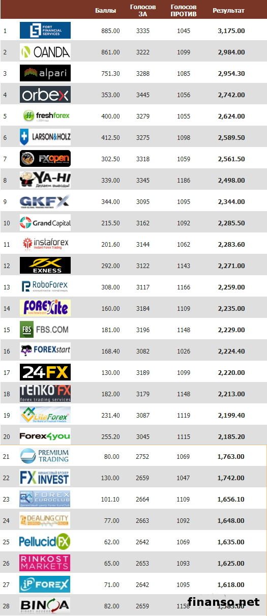Судьба человека, пришедшего на Международный валютный рынок Форекс, чтобы стать трейдером, в первую очередь зависит от верно сделанного им выбора брокерской компании. Несмотря на то что брокеры, по сути, ведут на рынке одну и ту же деятельность, каждый из них обладает собственной индивидуальностью. Именно по этой причине у человека, не имеющего какого-либо опыта работы на Форекс, могут возникнуть некоторые проблемы с выбором брокерской компании. Приходящие работать на Форекс новички обращают внимание на тот момент только на параметры и услуги, предлагаемые трейдерам. В итоге, пока трейдер был новичком, деятельность выбранной им компании его вполне устраивала. Однако, набравшись опыта, ему становится понятным, что выбранный им брокер не столь хорош, как это казалось ранее, информируют корреспонденты «Украина сегодня: Finanso.net». Каких-либо конкретных правил, следуя которым можно было бы сделать верный выбор брокера, в мире нет, и это следует понимать. В своих поисках каждый отдельно взятый трейдер, новичок он или профессионал, опирается на собственные знания и чутье. На помощь таким людям приходит Академия Masterforex-V, пишет «Биржевой лидер». В номинацию на лучшего брокера мира для начинающих трейдеров включались компании, входящие в самый авторитетный на сегодняшний день международный рейтинг брокеров Форекс Академии Masterforex-V. В номинации, исходя из представленной таблицы, учитываются баллы этого рейтинге (OANDA (Оанда) 811,0 балла, у Fort Financial Services 885,0 и т. д. ), а также результаты голосования на странице лучшего брокера мира для начинающих трейдеров. Лучший Форекс-брокер мира для начинающих трейдеров в 2017 г.Из таблицы видно: - на первом месте расположилась компания «Fort Financial Services». Лидер рейтинга работает на международном рынке с 2010 г., а в своей деятельности компания делает акцент на первоклассный сервис, дополненный множеством сопутствующих услуг; - компания «OANDA» разместилась на втором месте. На рынке Форекс брокер работает уже более двадцати лет, используя на Форекс-рынке новейшие технологии для предложения своих услуг, как для крупных корпораций, так и для частных лиц; - третье место в рейтинге заняла компания «Alpari Limited», пользующейся доверием у всех своих клиентов, благодаря своей безупречной репутации. Далее следуют: - ORBEX; - FreshForex; - Larson&Holz; - FXOpen; - YA-HI.com; - GKFX; - Grand Capital; - InstaForex (Инстафорекс); - EXNESS (Экснесс); - RoboForex; - Forexite; - FBS Markets Inc.; - ForexStart; - 24FX; - TenkoFX; - LiteForex; - Forex4you; - Premium Trading; - FX-Invest; - Forex EuroClub; - Dealingcity; - Pellucid FX; - Rinkost Markets; - iP Forex; - Binoa; - Arena FX. |