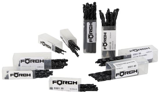 В автосервисе используются короткие спиральные свёрла с цилиндрическим хвостовиком, которые различаются по составу металла, наличию покрытия, виду покрытия и другим параметрам. Förch предлагает сверла быстрорежущей стали, в том числе легированные кобальтом и покрытые нитритом титана, титан-алюминий-нитритом и покрытием «Альхорна» (AlCrN), а также с резцом из карбида вольфрама, который сопоставим с природным алмазом. Сверла различаются также по способу изготовления, углом заточки вершины и прочим показателям. Также следует знать, что кроме цилиндрических спиральных свёрл на СТО используют конусные и ступенчатые свёрла, которые также предлагает Förch. Для улучшения качества сверления необходимо использовать различные жидкости и смазки современной автохимии, что увеличит не только качество работы, но и сберегает инструмент. |