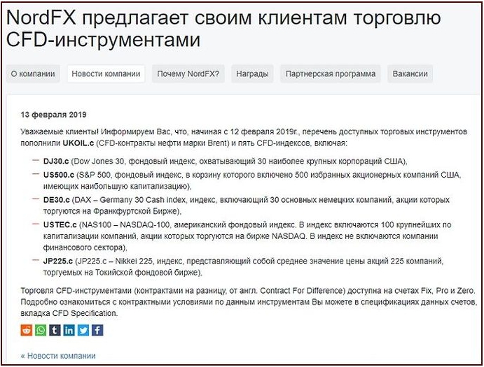 Для трейдеров NordFX открыта торговля CFD-инструментамиКатегория: Форекс
