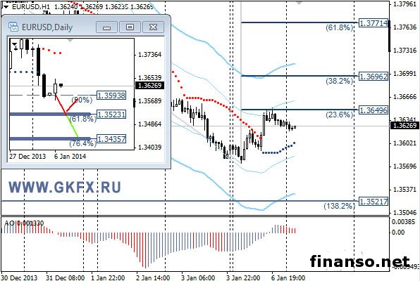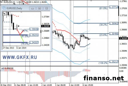 Движение валютной пары.Как уже отмечалось накануне, отчеты из США на этой неделе будут двигать рынок Форекс, что мы могли наблюдать и вчера. Если присмотреться внимательнее, то можно увидеть, что в отчете ISM показатель занятости значительно вырос, свидетельствуя о том, что продолжит расти на этой неделе. Аналитики «Биржевого лидера» - журнала для инвесторов - отмечают, что сегодня какой-либо значительной статистики по США выходить не будет, поэтому торговая сессия на рынке пройдет в основном на технических моментах. «На этой неделе я уже традиционно буду рассматривать два варианта возможного движения цены: основной красный и альтернативный зеленый», - сообщил эксперт брокерской компании GKFX. Значимые на сегодня, 7 января, уровни были отмечены на часовом графике. Как можно увидеть, индикатор АО сейчас находится в положительной зоне и снижается, таким образом указываю на коррекцию перед вполне возможным продолжением роста. В свою очередь индикатор тренда указывает на рост курса пары евро/доллар. Если цена пробьет уровень 1,3115/20 - это позволит выйти на продажи с целью в 1,3600, 1,3580 и 1,3530. При этом уровнем поддержки будет 1,3528/20. Кроме того, если наложить на часовой график осциллятор MACD, то можно увидеть, что он также находится в положительной зоне, что указывает на снижение валютной пары. Но если посмотреть на четырехчасовой график, то MACD уже находится в отрицательной зоне, в направлении роста. В настоящее время пара евро/доллар торгуется у наклонного канала 1,3893-1,3775, пробой которого должен привести к дальнейшему росту валютной пары. В этом случает уровень сопротивления переместится к отметке 1,3653. Напомним, что на прошлой неделе вышли данные по индексу производственной активности в США, который снизился с 57,3 до 57 пунктов, сводный индекс менеджеров закупок вырос с 51,7 до 52,1 пункта. Всю прошлую неделю пара евро/доллар снижалась, а в понедельник, 6 января, она начала тестировать нижний уровень восходящего канала после ложного пробоя уровня 1,3850, тогда аналитики прогнозировали выход котировок в нейтральную зону, что мы и можем наблюдать сегодня. |
