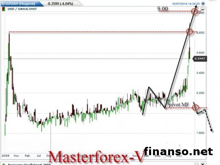 Курс гривны на Форекс.По состоянию на 12 февраля курс украинской гривны укрепился к: • доллару США - до 8.52 гривны; • английскому фунту стерлингов - до 13.92 гривны; • белорусскому рублю - до 0.0088 гривны; • казахскому тенге - до 5.4844 гривны; • российскому рублю - до 2.4645 гривны; • литовскому литу - до 3.35 гривны; • канадскому доллару - до 7.70 гривны; • китайскому юаню - до 140.6412 гривны; • австралийскому доллару - до 7.80 гривны; • японской иене - до 83.4079 гривны; • сингапурскому доллару - до 6.72 гривны; • швейцарскому франку - до 9.45 гривны; • евро - до 11.57 гривны. И только курс к новозеландскому доллару курс Украинской гривны остался без изменений. По какой причине гривна укрепилась к практически всем валютам?Эксперты отмечают, что на фоне того, что многие мировые валюты начали укрепляться по отношению к доллару, украинская гривна также укрепилась как с доллару США, так и к остальным мировым валютам. Технический анализ курса украинской гривны.Кроме того, аналитики рассказали о том, что курс украинской гривны, после того как был создан новый исторический максимум на уровне 8,9046 укрепился и теперь торгуется на уровне в 8,5446 гривны за один доллар США. Эксперты отмечают, что ряд валют во время торгов укрепился по отношению к доллару, а японская иена наоборот снизилась. В том случае если гривна будет продолжать свое падение, то уровнем сопротивления будет 8,9046 – новый максимум, а также психологический уровень в 9 гривен за один доллар. А в случае роста уровнем поддержки окажется уровень пивота МФ. Отметим, что главными причинами падения украинской гривны стали дестабилизация политической обстановки в Украине, снижение золотовалютных запасов Нацбанка, а также неопределенность в дальнейших экономических перспективах. В настоящее время украинские банки покупают доллар по цене от 8,2 до 8,63 гривен, а продают его от 8,45 до 8,93 гривен. |