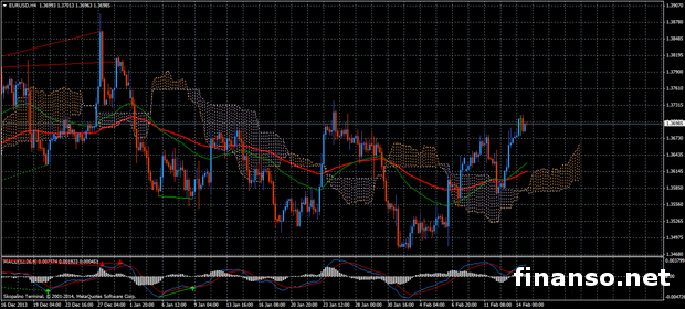 На минувшей неделе пара EUR/USD продвинулась выше, так как рост экономики оказался сильнее опасений инфляции. У Германии отмечен рост на 0.4% за последние три месяца прошлого года, который превзошел прогнозируемые 0.3%. Восстановление экономической сферы Еврозоны стало причиной роста евро. Причиной этому стало увеличение ВВП Франции и других стран. Основным двигателем рынка на протяжении недели являются индексы экономических настроений Германии и менеджеров по закупкам.Сегодня, 18 февраля, ожидается публикация немецкого индекса экономических настроений ZEW. Настроения инвесторов все еще под властью роста германской экономики. Этот же показатель в Еврозоне увеличился до 73.3, превзойдя прогнозируемую величину. Индекс ZEW в Германии, как предполагают эксперты брокерской компании ForexTrend, уменьшится до 61.3. Детально анализировали ситуацию журналисты издания «Украина сегодня: finanso.net». В четверг, 20 февраля, ожидается публикация предварительного индекса менеджеров по закупкам в сфере производства Франции и Германии. Пара EUR/USD отработала прогнозируемое движение.Всю неделю цена находилась в области коррекции. Район торгов не превысил 152 пунктов. Показатель Low снижался к минимальной отметке 1.3563, а показатель High обновился и добрался до максимального уровня 1.3715. На этой неделе эксперты Форекс фирмы-брокера ForexTrend прогнозируют коррекцию с последующим увеличением. EUR/USD готова оказаться на территории «быков». Цена, как и прежде, развернула торговую деятельность в области облака Ишимоку и скользящих средних EMA (50 и 100). Это говорит о присутствии коррекционного состояния на финансовом рынке. График, расположенный ниже, показывает последующее увеличение. Цена ведет торги над облаком Ишимоку и скользящими средними EMA (50 и 100). Это еще раз подчеркивает преимущество «быков» на рынке Форекс. Целью для пары валют евро/доллар стоит покупка на протяжении недели. |